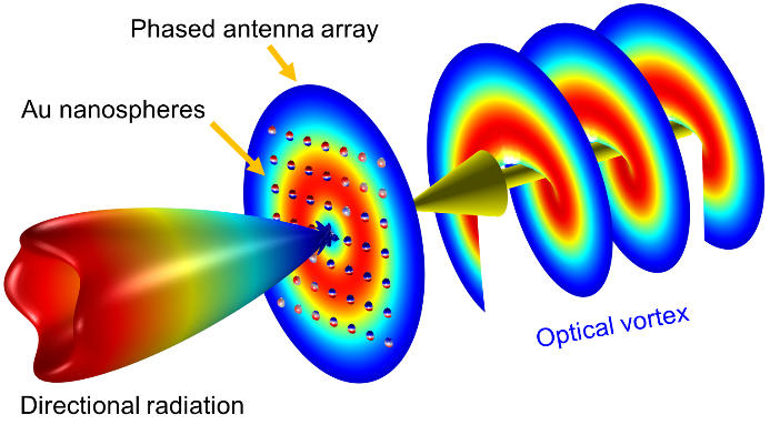 文章深入研究了轨道角动量(OAM)自由度下表面等离激元纳米结构与光的相互作用。光的轨道角动量为光与物质的相互作用提供了一个新的自由度,然而如何用这个物理维度来控制这种相互作用仍然是一个开放的问题。在本文中,杨大杰等人开发了一种支持光学OAM模拟的数值方法,从而提出包含OAM物理维度的复杂表面等离激元行为的深刻见解。文章从理论上证明了等离激元纳米结构可以作为高效的天线来接收和定向辐射OAM光束的能量。光学OAM和自旋角动量(SAM)之间的相互作用导致新的等离激元极化和二次辐射,离开OAM光源技术这些是无法实现的。对于阵列纳米天线,通过波束的OAM可控制表面等离激元子单元间的相位延迟,利用表面等离激元子单元在远场的相干作用可实现定向辐射,其功能类似于相控阵天线。这些发现在OAM领域拓展了我们对纳米表面等离激元的认识,在量子信息处理和超弱生化信号的动态及超分辨率传感方面具有广阔的前景。